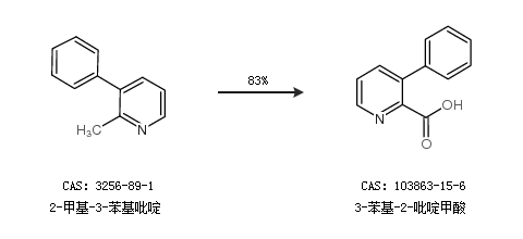 1.通过2-甲基-3-苯基吡啶合成3-苯基-2-吡啶甲酸,收率约83%;