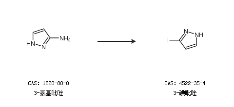 1.通过3-氨基吡唑合成3-碘吡唑