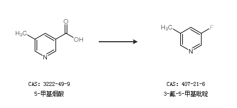 2.通过5-甲基烟酸合成3-氟-5-甲基吡啶
