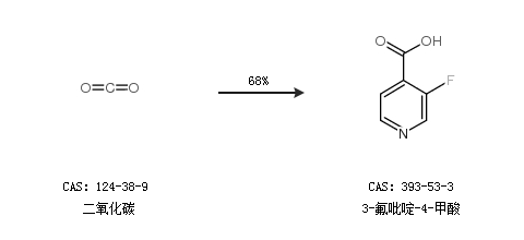 1.通过二氧化碳合成3-氟吡啶-4-甲酸,收率约68%;