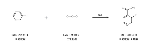 2.通过3-氟吡啶和二氧化碳合成3-氟吡啶-4-甲酸,收率约86%;
