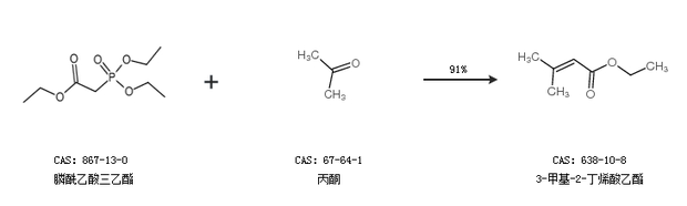 1.通过膦酰乙酸三乙酯和丙酮合成3-甲基-2-丁烯酸乙酯,收率约91%;