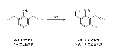 2.通过2,6-二乙基苯胺合成3-氯-2,6-二乙基苯胺,收率约92%;