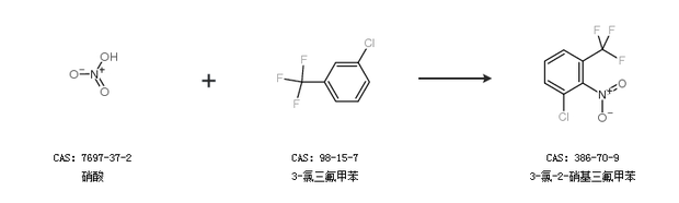 1.通过硝酸和3-氯三氟甲苯合成3-氯-2-硝基三氟甲苯