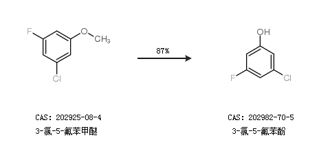 1.通过3-氯-5-氟苯甲醚合成3-氯-5-氟苯酚,收率约87%;