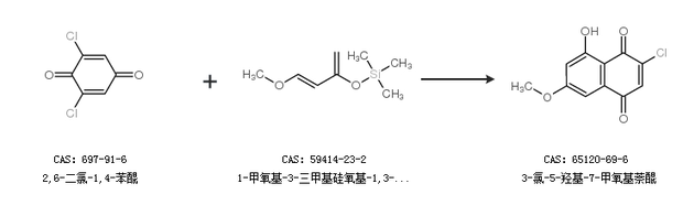 1.通过2,6-二氯-1,4-苯醌和1-甲氧基-3-三甲基硅氧基-1,3-丁二烯合成3-氯-5-羟基-7-甲氧基萘醌