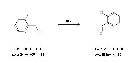 2.通过(3-氯吡啶-2-基)甲醇合成3-氯吡啶-2-甲醛,收率约48%;