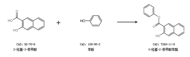 1.通过2-羟基-3-萘甲酸和苯酚合成3-羟基-2-萘甲酸苯酯