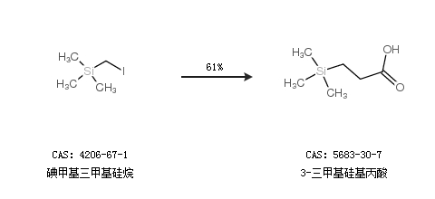 2.通过碘甲基三甲基硅烷合成3-三甲基硅基丙酸,收率约61%;