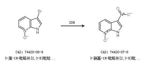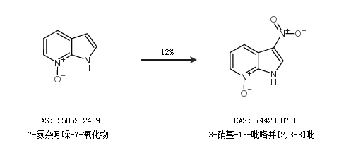 2.通过3-溴-1H-吡咯并[2,3-B]吡啶 7-氧化物合成3-硝基-1H-吡咯并[2,3-B]吡啶-7-氧化物,收率约20%;