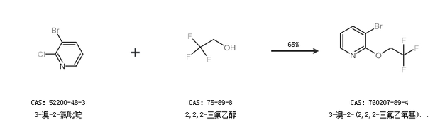 1.通过3-溴-2-氯吡啶和2,2,2-三氟乙醇合成3-溴-2-(2,2,2-三氟乙氧基)吡啶,收率约65%;
