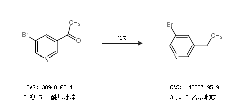 1.通过3-溴-5-乙酰基吡啶合成3-溴-5-乙基吡啶,收率约71%;