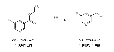 2.通过5-溴烟酸乙酯合成3-溴吡啶-5-甲醇,收率约60%;