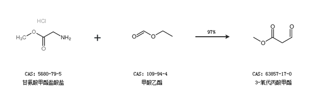 2.通过甘氨酸甲酯盐酸盐和甲酸乙酯合成3-氧代丙酸甲酯,收率约97%;