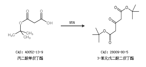 2.通过丙二酸单叔丁酯合成3-氧化戊二酸二叔丁酯,收率约95%;