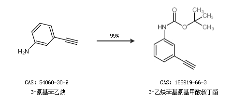 1.通过3-氨基苯乙炔合成3-乙炔苯基氨基甲酸叔丁酯,收率约99%;