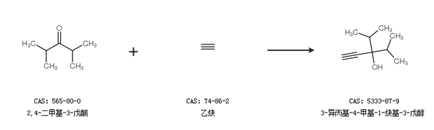 1.通过2,4-二甲基-3-戊酮和乙炔合成3-异丙基-4-甲基-1-炔基-3-戊醇