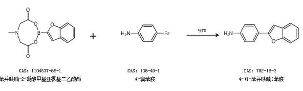 2.通过苯并呋喃-2-硼酸甲基亚氨基二乙酸酯和4-溴苯胺合成4-(1-苯并呋喃)苯胺,收率约93%;