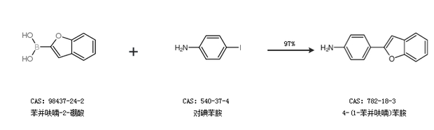 1.通过苯并呋喃-2-硼酸和对碘苯胺合成4-(1-苯并呋喃)苯胺,收率约97%;
