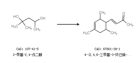 2.通过2-甲基-2,4-戊二醇合成4-(2,4,6-三甲基-3-环己烯-1-基)-3-丁烯-2-酮