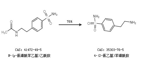 1.通过N-(p-氨磺酰苯乙基)乙酰胺合成4-(2-氨乙基)苯磺酰胺,收率约76%;