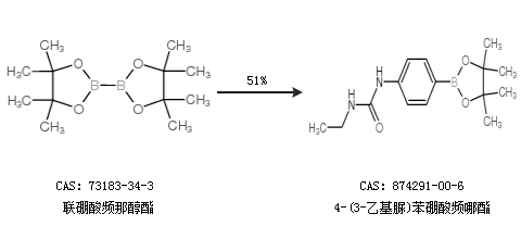 1.通过联硼酸频那醇酯合成4-(3-乙基脲)苯硼酸频哪酯,收率约51%;