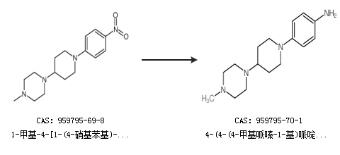 1.通过1-甲基-4-[1-(4-硝基苯基)-4-哌啶基]哌嗪合成4-(4-(4-甲基哌嗪-1-基)哌啶-1-基)苯胺