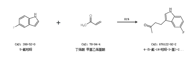 1.通过5-氟吲哚和丁烯酮 甲基乙烯基酮合成4-(5-氟-1H-吲哚-3-基)-2-丁酮,收率约81%;