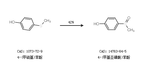 2.通过4-(甲硫基)苯酚合成4-(甲基亚磺酰)苯酚,收率约42%;