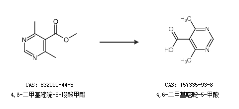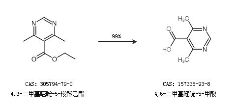 1.通过4,6-二甲基嘧啶-5-羧酸乙酯合成4,6-二甲基嘧啶-5-甲酸,收率约99%;