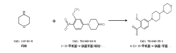 2.通过吗啉和1-(3-甲氧基-4-硝基苯基)哌啶-4-酮合成4-[1-(3-甲氧基-4-硝基-苯基)-哌啶-4-基]-吗啉