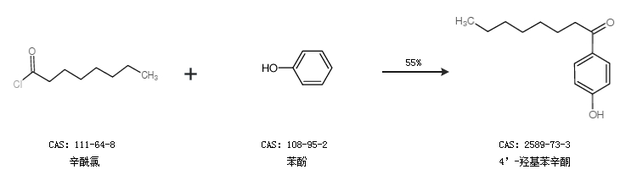 1.通过辛酰氯和苯酚合成4’-羟基苯辛酮,收率约55%;