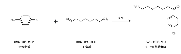 2.通过4-溴苯酚和正辛醛合成4’-羟基苯辛酮,收率约65%;
