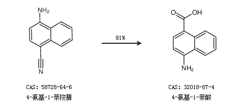 1.通过4-氨基-1-萘羧腈合成4-氨基-1-萘酸,收率约91%;