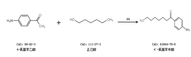 1.通过4-氨基苯乙酮和正己醇合成4''-氨基苯辛酮,收率约8%;