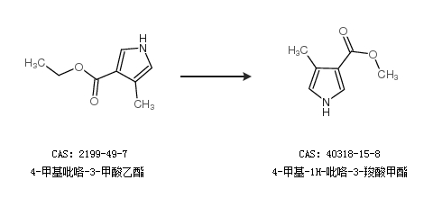 2.通过4-甲基吡咯-3-甲酸乙酯合成4-甲基-1H-吡咯-3-羧酸甲酯