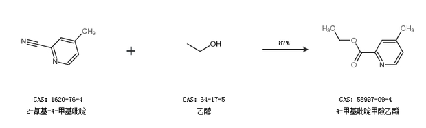 2.通过2-氰基-4-甲基吡啶和乙醇合成4-甲基吡啶甲酸乙酯,收率约87%;