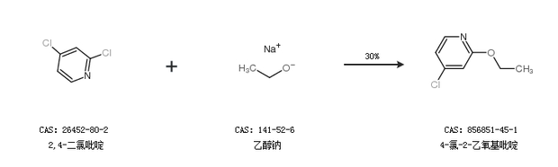 2.通过2,4-二氯吡啶和乙醇钠合成4-氯-2-乙氧基吡啶,收率约30%;