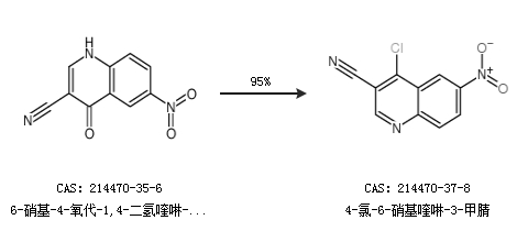 1.通过6-硝基-4-氧代-1,4-二氢喹啉-3-甲腈合成4-氯-6-硝基喹啉-3-甲腈,收率约95%;