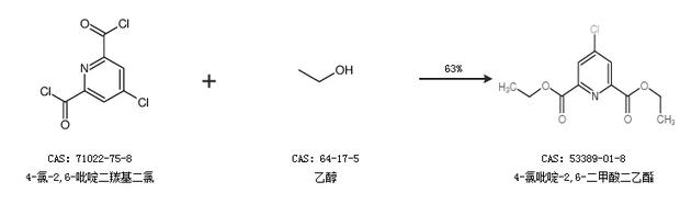 1.通过4-氯-2,6-吡啶二羰基二氯和乙醇合成4-氯吡啶-2,6-二甲酸二乙酯,收率约63%;