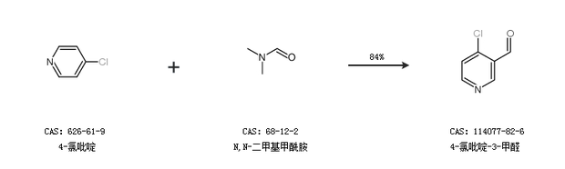 1.通过4-氯吡啶和N,N-二甲基甲酰胺合成4-氯吡啶-3-甲醛,收率约84%;