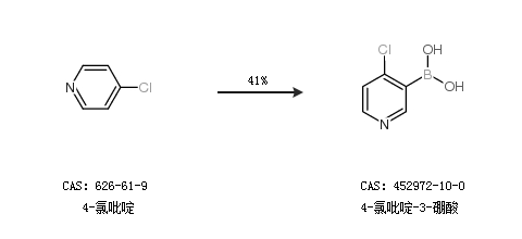 1.通过4-氯吡啶合成4-氯吡啶-3-硼酸,收率约41%;