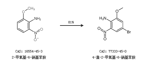 1.通过2-甲氧基-6-硝基苯胺合成4-溴-2-甲氧基-6-硝基苯胺,收率约81%;