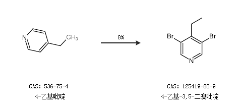 2.通过4-乙基吡啶合成4-乙基-3,5-二溴吡啶,收率约8%;