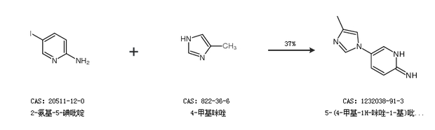1.通过2-氨基-5-碘吡啶和4-甲基咪唑合成5-(4-甲基-1H-咪唑-1-基)吡啶-2-胺,收率约37%;