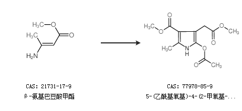 1.通过β-氨基巴豆酸甲酯合成5-(乙酰基氧基)-4-(2-甲氧基-2-氧代乙基)-2-甲基-1H-吡咯-3-羧酸甲酯