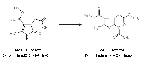 2.通过2-[4-(甲氧基羰酰)-5-甲基-2-氧-2,3-二氢-1H-吡咯-3-乙酸合成5-(乙酰基氧基)-4-(2-甲氧基-2-氧代乙基)-2-甲基-1H-吡咯-3-羧酸甲酯