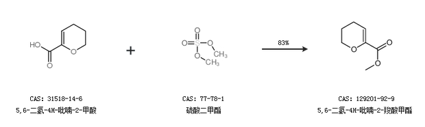 1.通过5,6-二氢-4H-吡喃-2-甲酸和硫酸二甲酯合成5,6-二氢-4H-吡喃-2-羧酸甲酯,收率约83%;