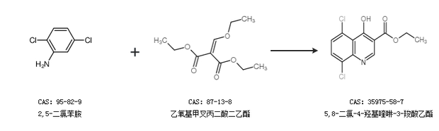 1.通过2,5-二氯苯胺和乙氧基甲叉丙二酸二乙酯合成5,8-二氯-4-羟基喹啉-3-羧酸乙酯