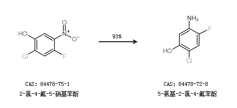 1.通过2-氯-4-氟-5-硝基苯酚合成5-氨基-2-氯-4-氟苯酚,收率约93%;